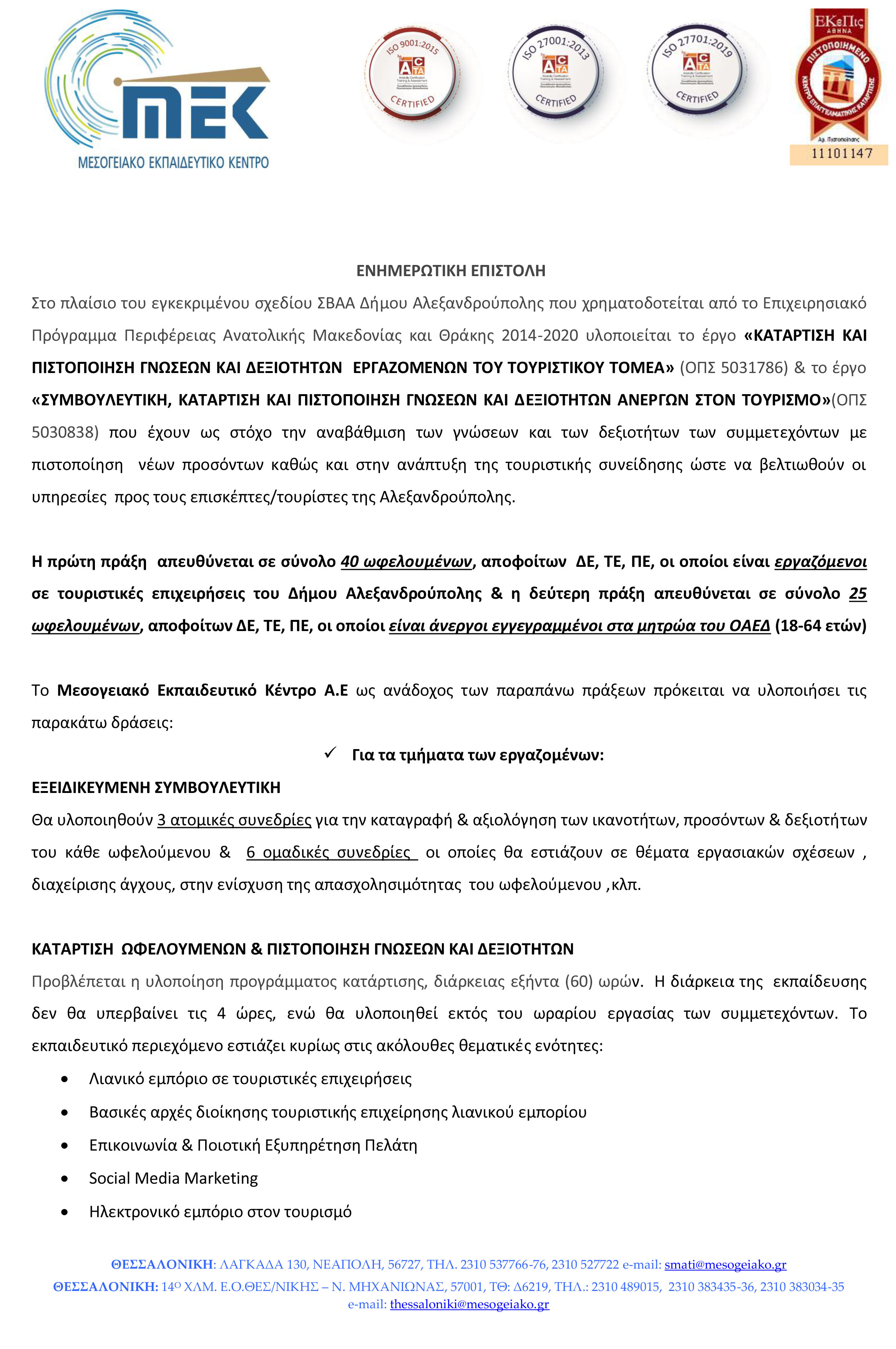 Τουριστική Ιαματική Επιχείρηση Δήμου Αλεξανδρούπολης Δ/νση: Εθνική Οδός Αλεξανδρούπολης – Μάκρης (παραπλεύρως δημοτικού camping) Τ.Κ. 68100Τηλ: +302551026055